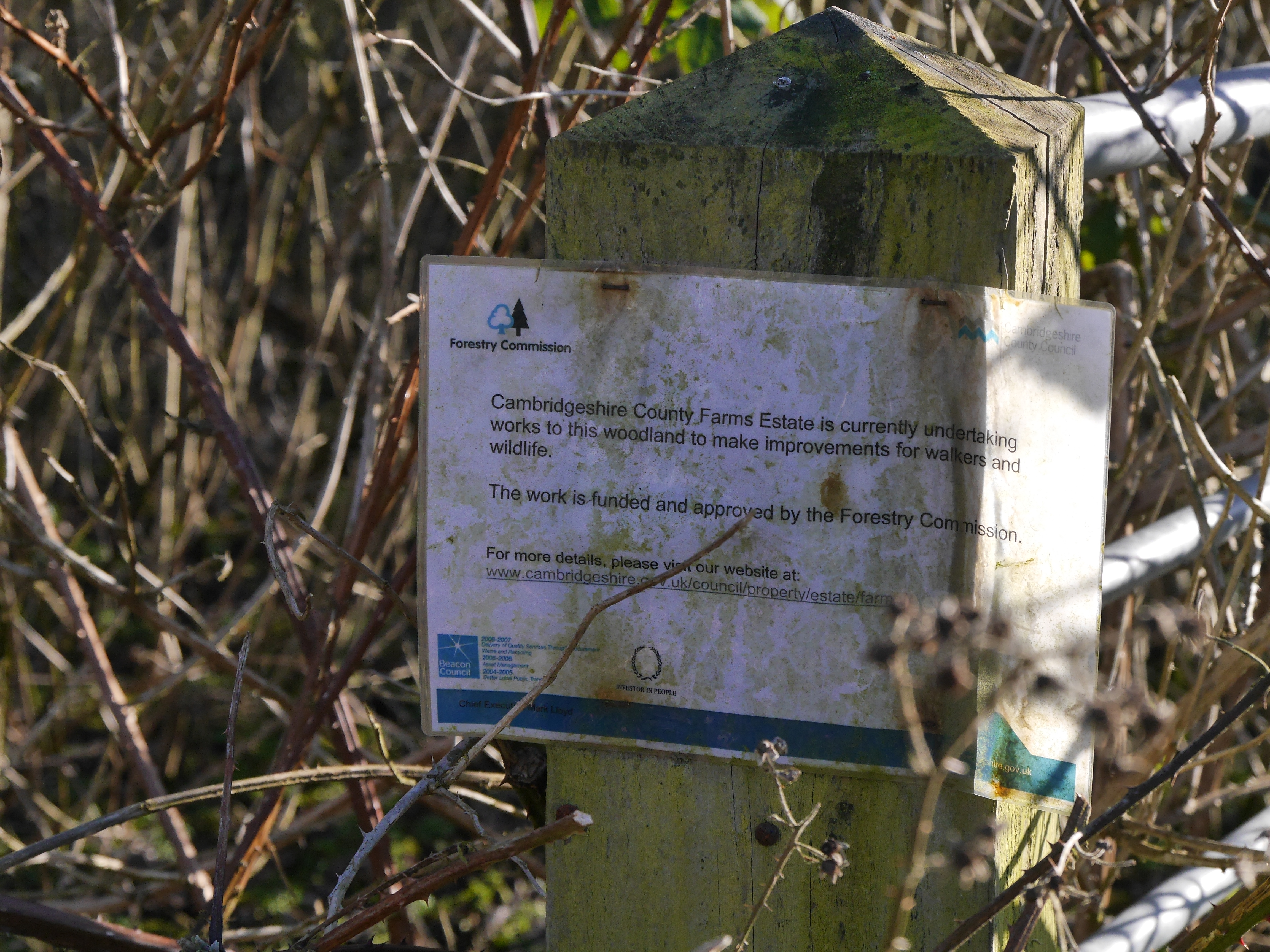 V12/7 Sign near entrance of Histon Wood - Histon and Impington